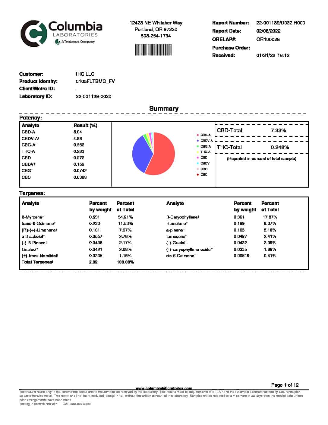 • COA: Full panel test (click to view)
